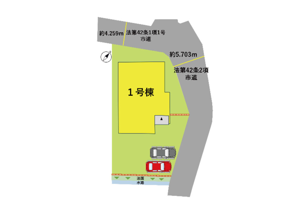 - 北西:4.259m公道 北東:5.703m公道