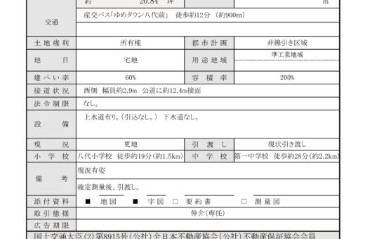 閑静な住宅街、ゆめタウン八代店まで徒歩12分!