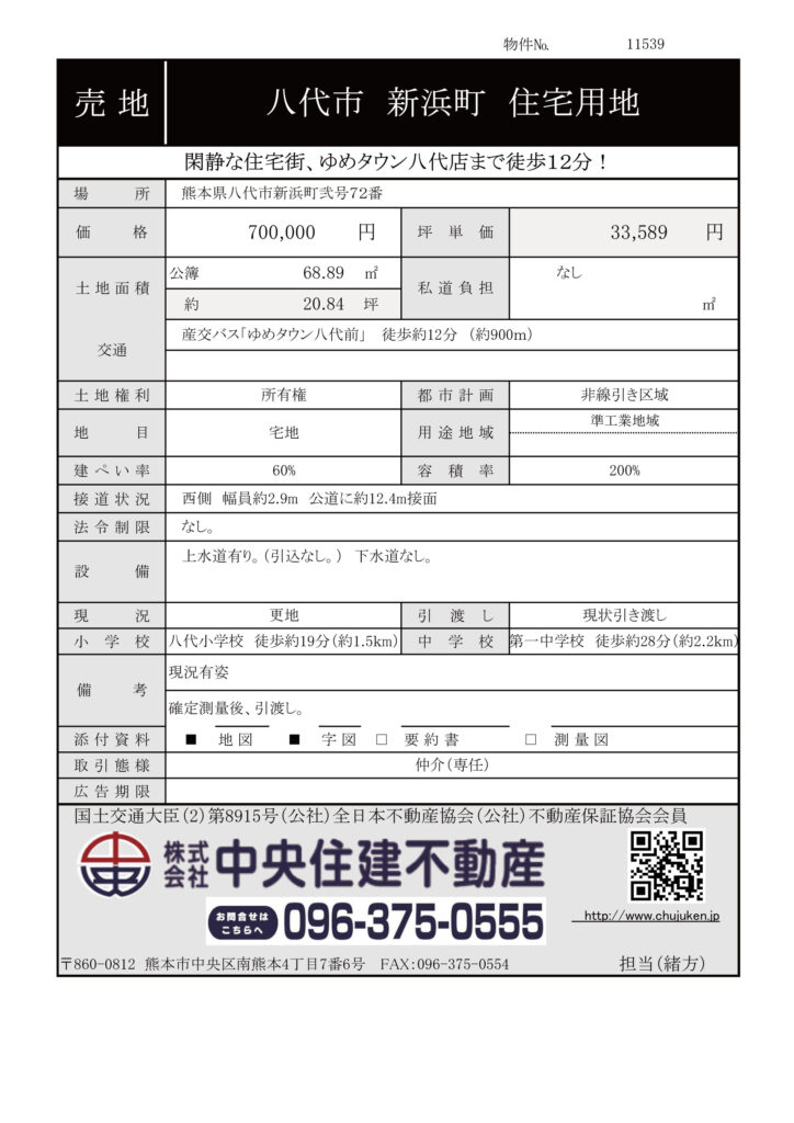 - 産交バス「ゆめタウン八代前」 徒歩約12分 (約900m)