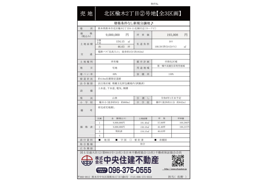 北区 楡木2丁目②号地【全3区画】