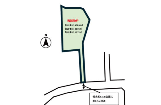 - 【南側】 幅員5.1m の公道に約2.1m接面。