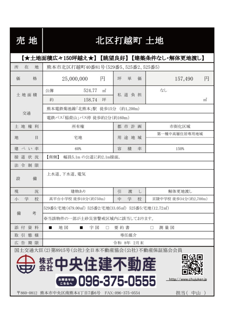 - 熊本市北区打越町40番81号(529番5、525番2、525番5)