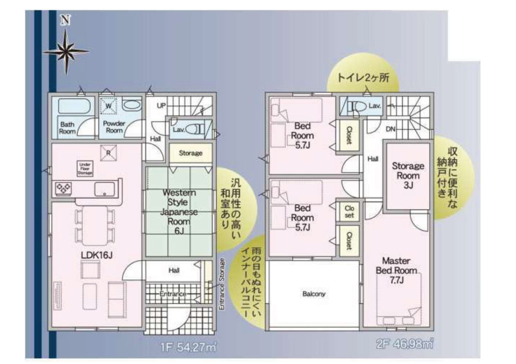 - 浴室暖房,浴室乾燥機,トイレ2ヶ所,温⽔洗浄便座,3⼝以上コンロ,カウンターキッチン,システムキッチン,浄⽔器,床下収納,⼈感センサー付照明,都市ガス,複層ガラス,モニタ付インターホン,ディンプルキー,防犯カメラ,⽕災警報器(報知機),ルーフバルコニー