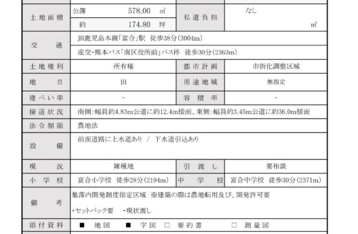 - JR鹿児島本線「富合」駅 徒歩38分(3004m)
