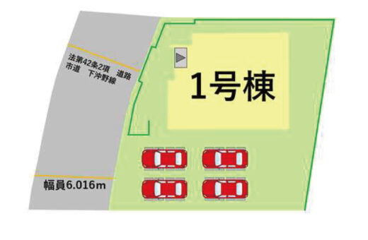 - 北西:約15.609(幅員6.016)m公道