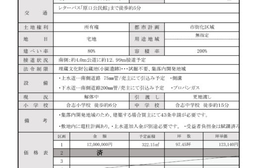 - ・集落内開発地域のため、建築する場合買主にて43条申請が必要です。
