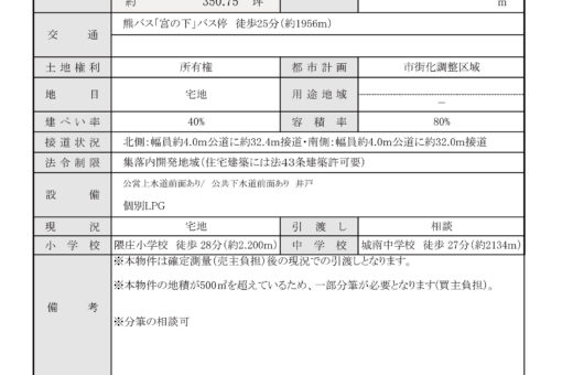 - ※本物件は確定測量(売主負担)後の現況での引渡しとなります。