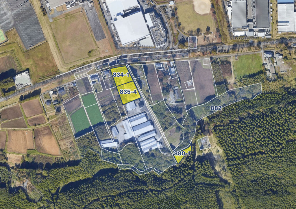 - 菊池郡大津町高尾野834番1(宅地・2490.03㎡)、835番4(畑・2926㎡)
