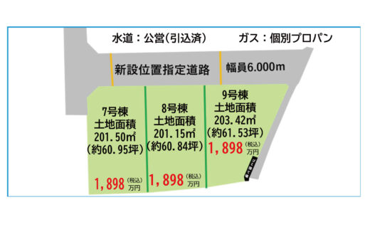 - ⑦201.50㎡(約60.95坪)⑧201.15㎡(約60.84坪)⑨203.42㎡(約61.53坪)