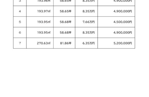 - ②450万円③④490万円⑤450万円⑥490万円⑦520万円