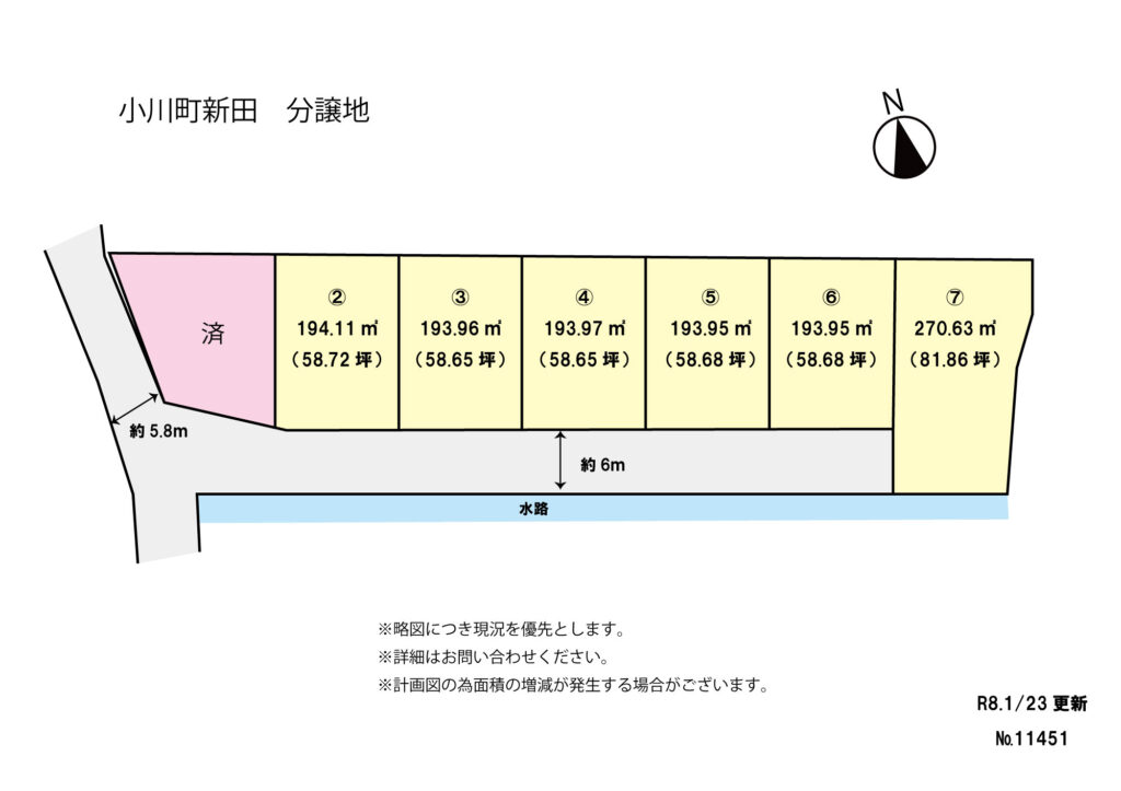 - 南側:幅員約6.0m(分譲地内新設道路)