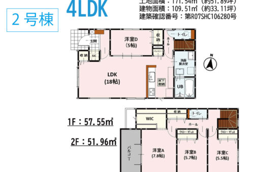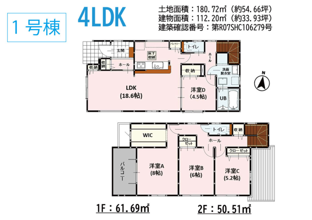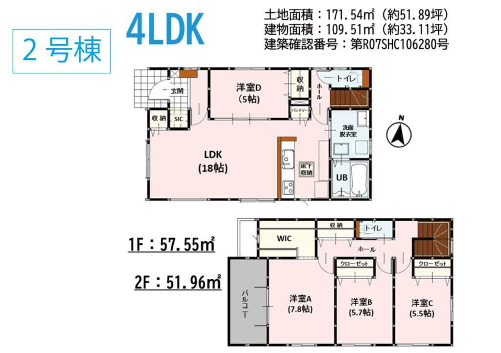 - ①180.72㎡(約54.66坪)②171.54㎡(約51.89坪)