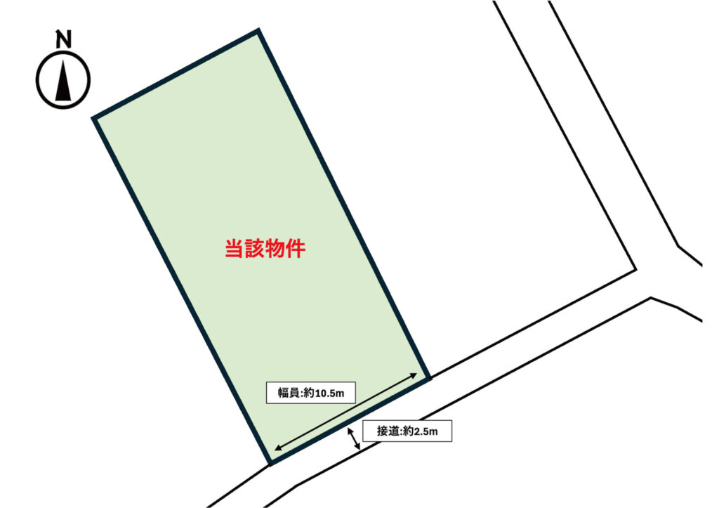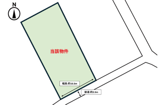 - 【南側】 幅員約2.5m 公道に約10.5m接面