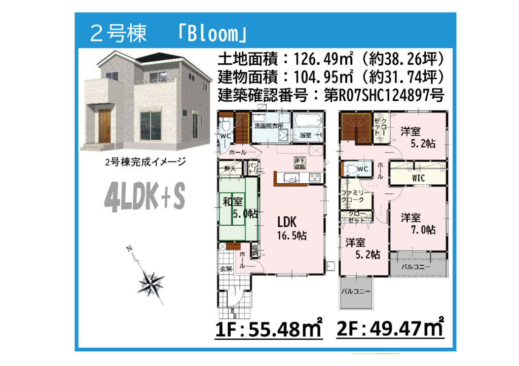 - ①126.49㎡(約38.26坪)②126.49㎡(約38.26坪)