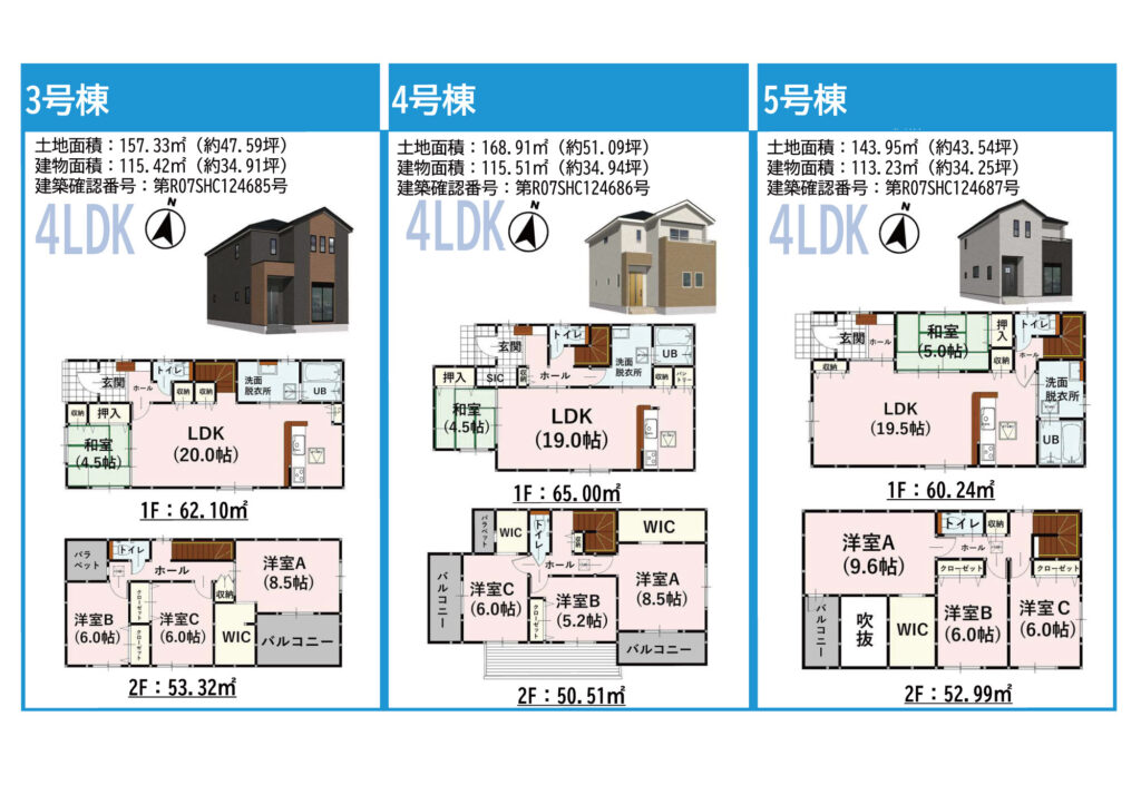 - 建築確認番号①第R07SHC124688②第R07SHC124689③第R07SHC124685