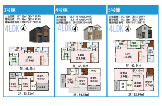 ④115.51㎡(約34.94坪)⑤113.23㎡(約34.25坪)