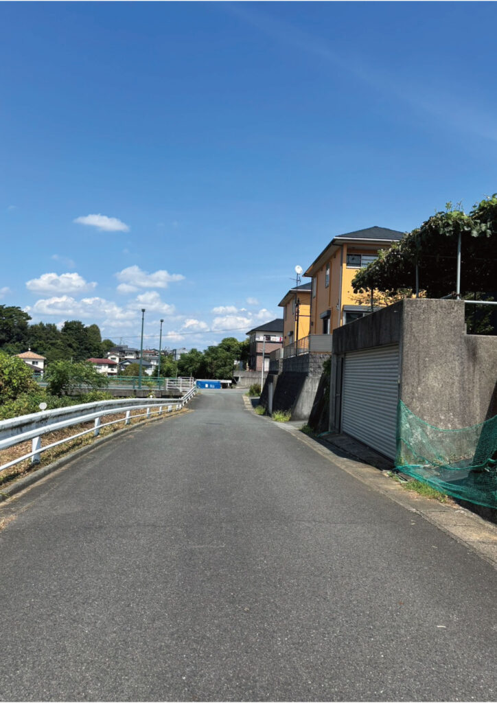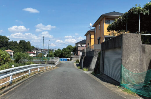 前面の北側公道は舗装されていますが、土砂災害警戒区域(イエローゾーン)を含んでいます