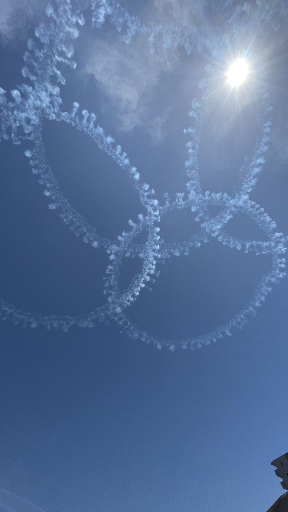 飛行音につられて空を見上げたら、回転しながら飛行するブルーインパルス‼️